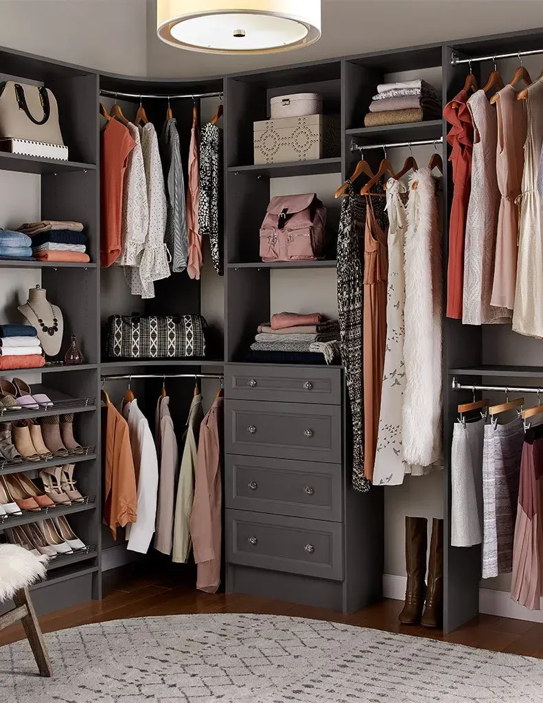 Every closet that we create is custom built. This means that your walk-in closet design will be created just for you. We take into consideration your lifestyle, your space, your decorating style and your budget when we design the storage area that is perfect for you. Here are some of the features that you can expect in your new closet: